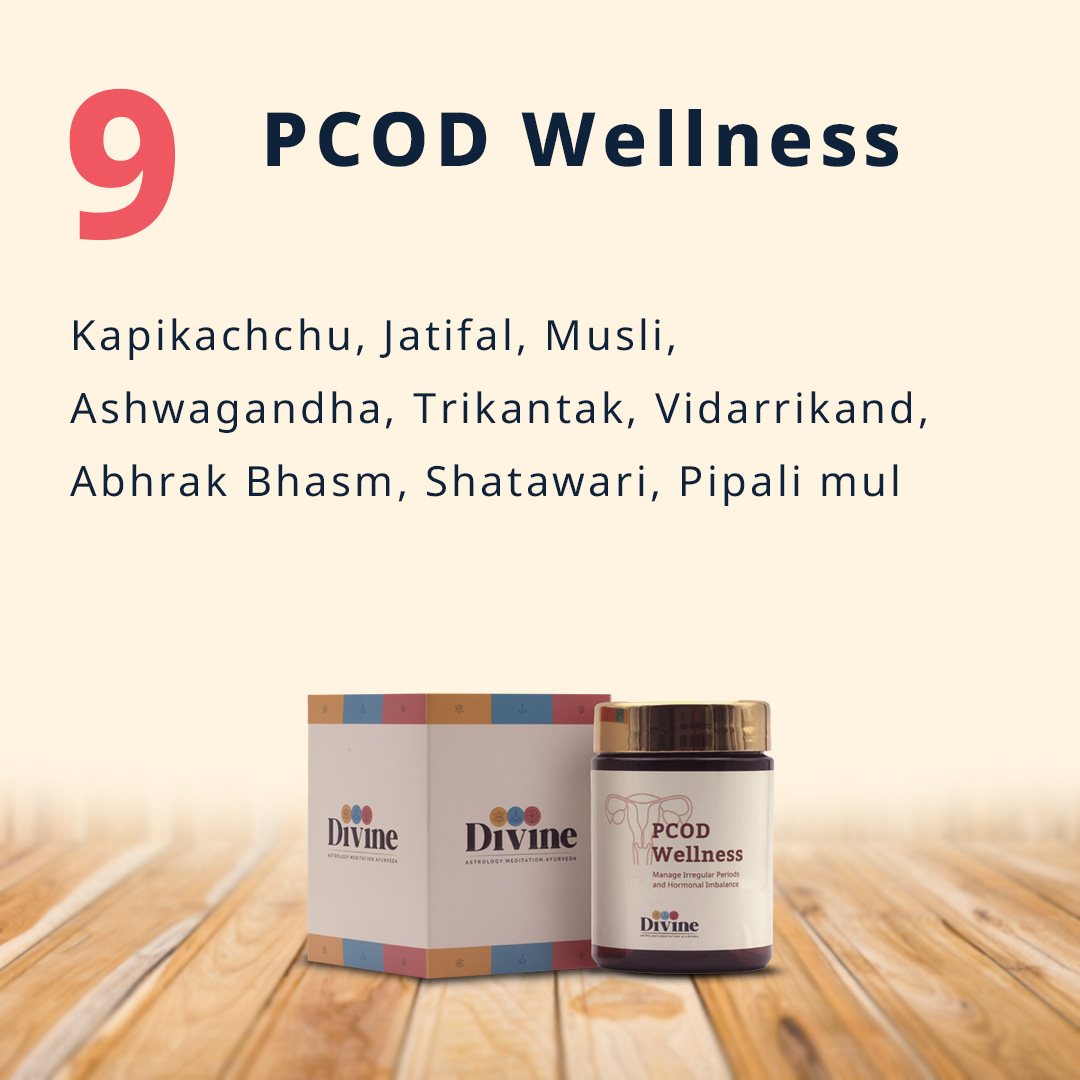 Description:- PCOD Wellness capsules are a strong Divine recommendation to girls who suffer from severe hormonal imbalance and disturbed period flow. These capsules are a culmination of strong ayurvedic herbs that will help you restore hormonal balance and regulate your cycles. PCOD Wellness is a potent formulation of ayurvedic ingredients like Kapikachchu, Jatifal, Musli, and Ashwagandha that are effective in treating PCOD symptoms like painful cramps, acne, and weakness. They help you dissolve the cysts in the ovaries and improve the chances to conceive with natural ovulation and healthy egg growth.